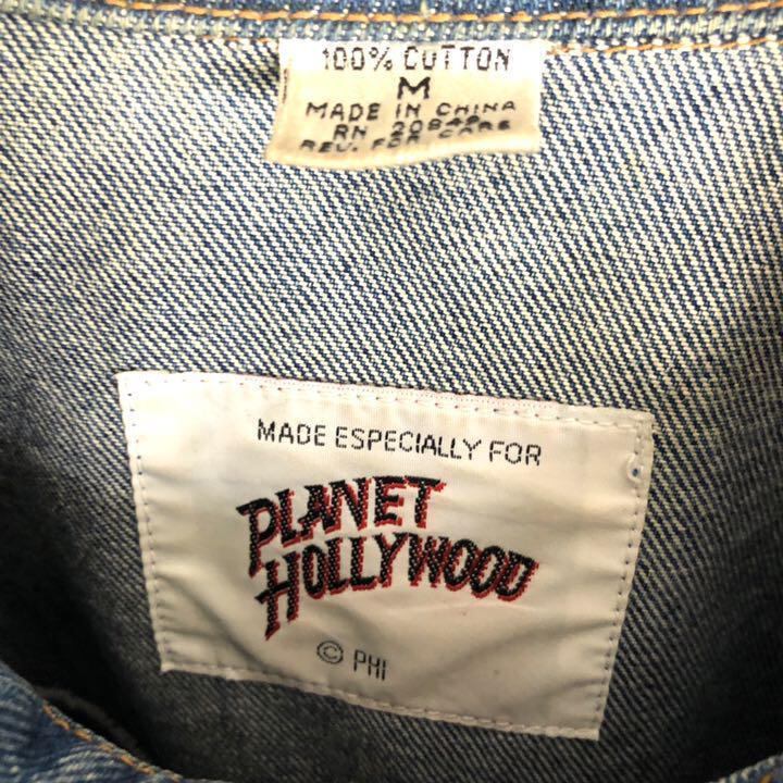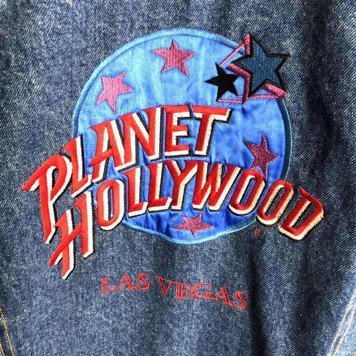 プラネットハリウッド☆デニムジャケット デカロゴ 90s ゆるだぼ古着 v85