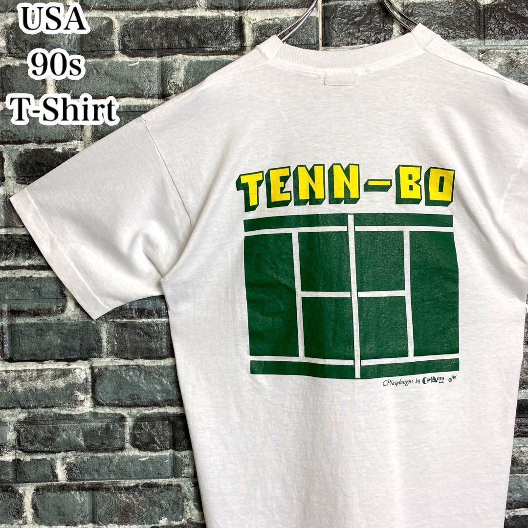 USA製 ヴィンテージホワイトTシャツ 古着 90s デカロゴ 希少 fv2