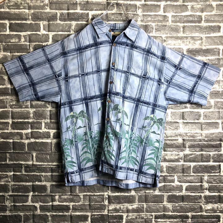 トミーバハマ☆アロハシャツ 古着 ヤシの木 ゆるだぼ シルク k28