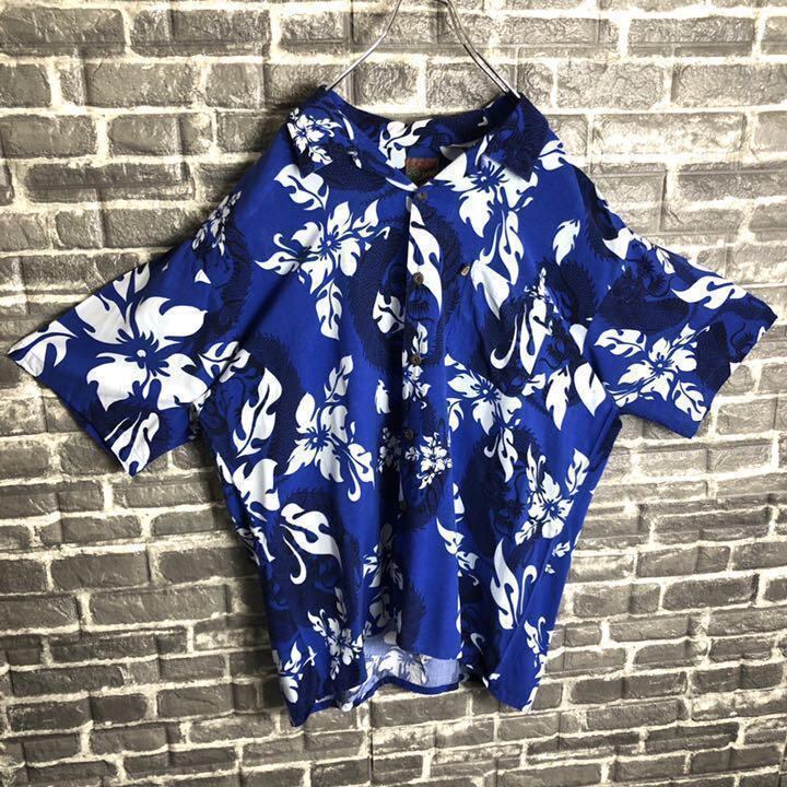 パイナップルコネクション☆アロハシャツ ドラゴン 龍 和柄古着ゆるだぼ k27