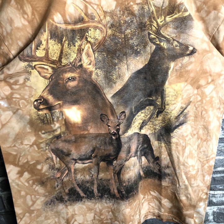 ギルダン☆アニマルプリントTシャツ 古着 デカロゴ 90s ゆるだぼ 鹿 j63