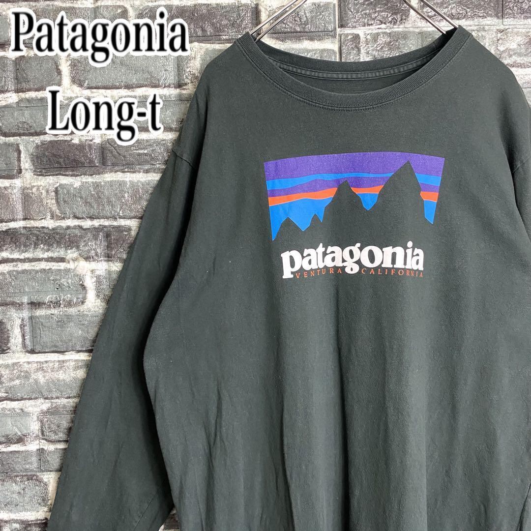 パタゴニア☆ロンT 古着 L ダークグリーン ビッグロゴ ゆるだぼ 人気 he4
